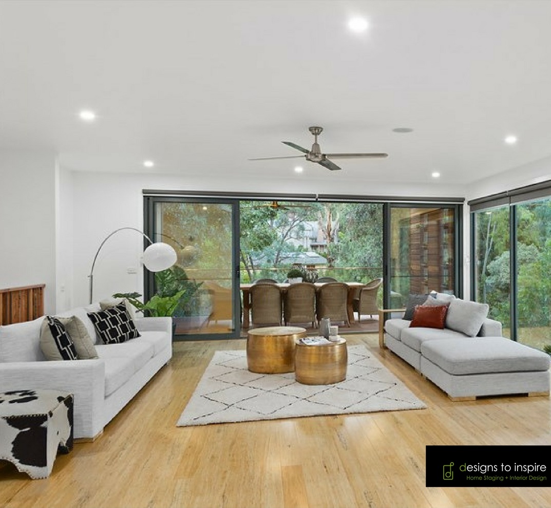Designs to Inspire styled this bespoke house in Warrandyte North with earthy tones to accentuate the woodland surroundings. Contemporary statement pieces elevate the designer look of this unique property. The home feels inviting, warm and tactile.